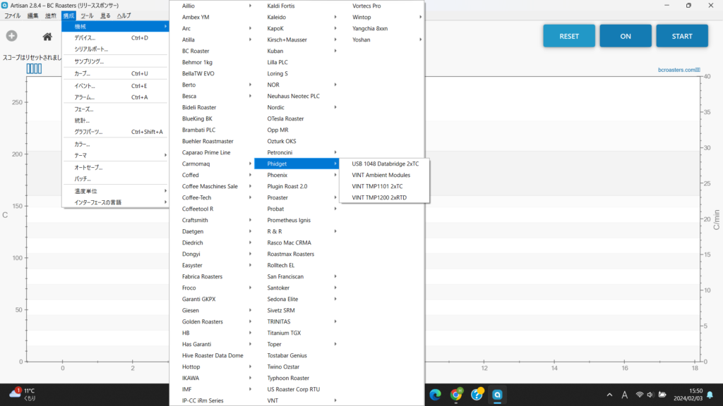 「Phidget VINT4入力熱電対インターフェース」を利用した、Artisanの導入方法について、備忘録も兼ねて記録しておきます。